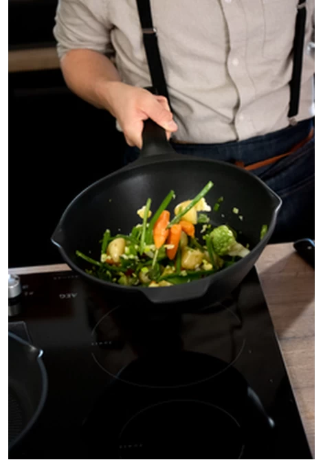Ο έξυπνος σχεδιασμός περιλαμβάνει μια πλήρως ενσωματωμένη πλευρική λαβή, εξασφαλίζοντας καλύτερο κράτημα, μεγαλύτερο έλεγχο και ευκολότερο μαγείρεμα κάθε μέρα.