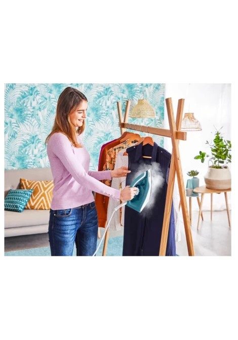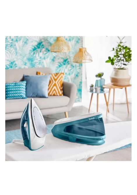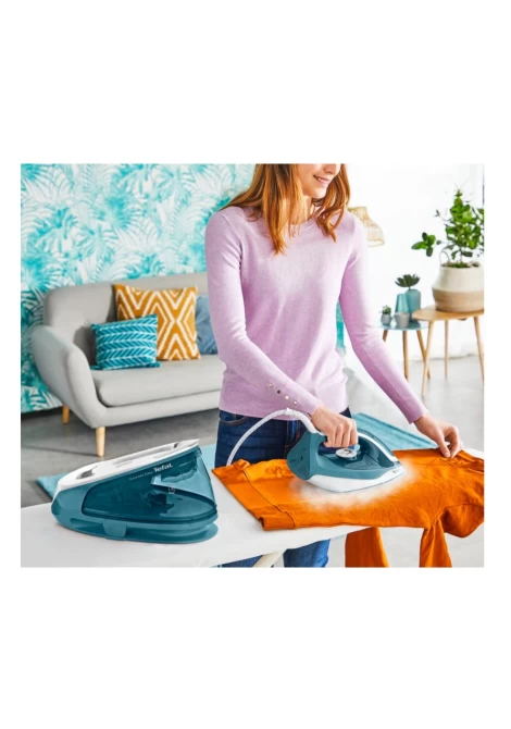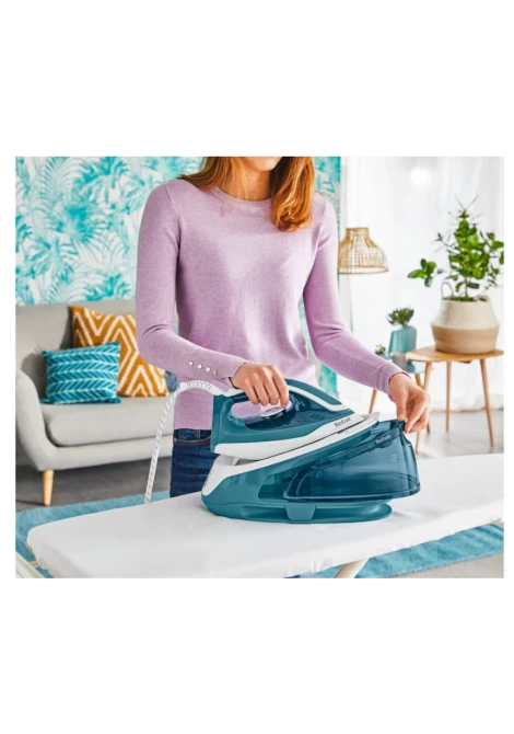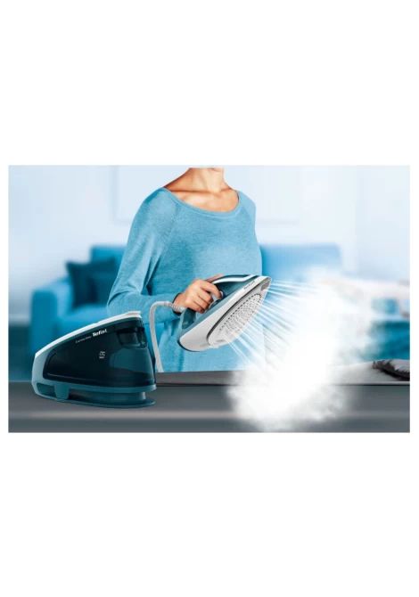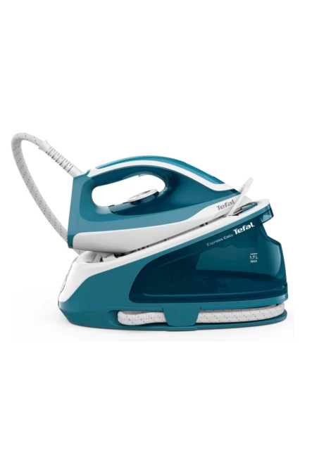 Σύστημα σιδερώματος Tefal Express Easy SV6131, με ισχύ 2400W, πίεση ατμού 5,8bar και μεγάλη δεξαμενή νερού 1,7lt που μπορείτε να ξαναγεμίσετε κατά τη διάρκεια του σιδερώματος.