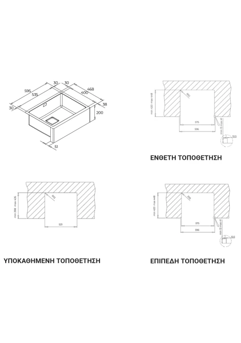 Τοποθέτηση 3 σε 1: Ένθετη, επίπεδη, υποκαθήμενη