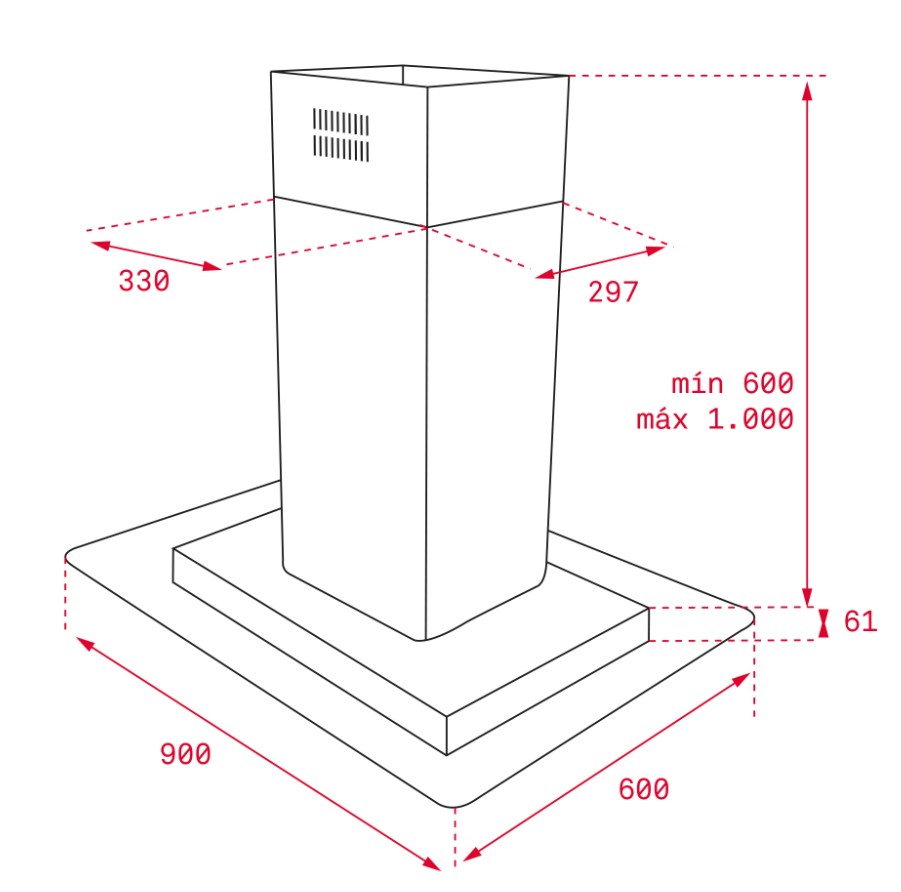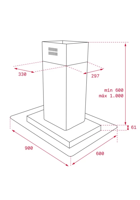 - Καμινάδα νησίδας/οροφής 90cm με κρυστάλλινο πτερύγιο