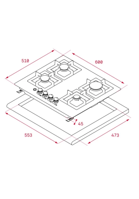Ανοξείδωτο πλατώ γκαζιού 60cm