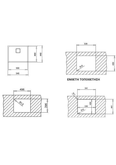 Τοποθέτηση 3 σε 1: Ένθετη, επίπεδη, υποκαθήμενη