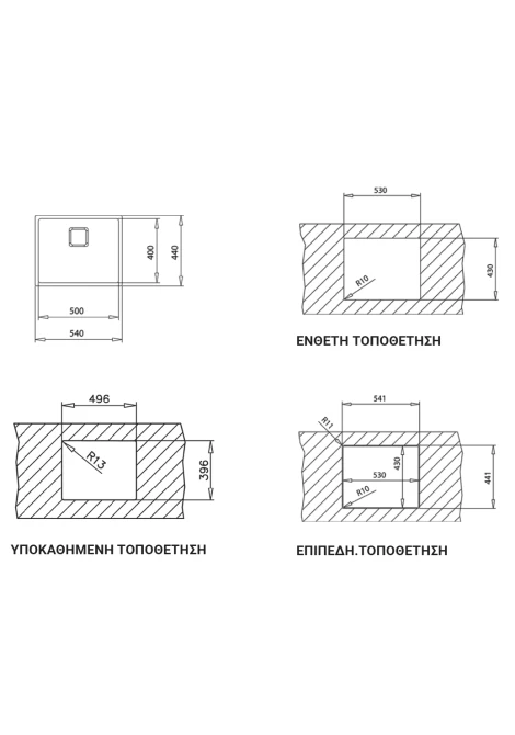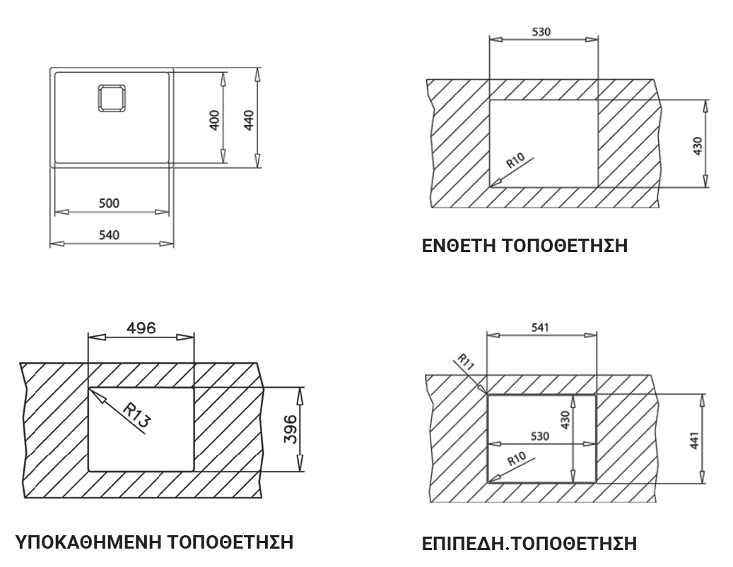 Τοποθέτηση 3 σε 1: Ένθετη, επίπεδη, υποκαθήμενη