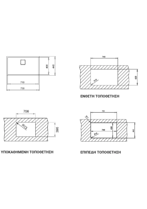 Τοποθέτηση 3 σε 1: Ένθετη, επίπεδη, υποκαθήμενη