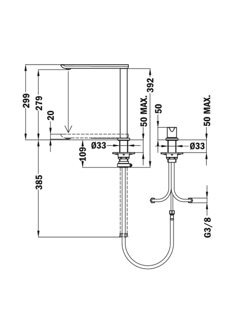 2 λειτουργικές θέσεις, ύψος : max299mm, min 20mm