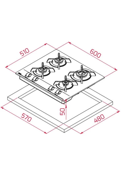 Teka GBC 64000 KBB Κρυστάλλινο πλατώ γκαζιού 60cm (112580005)
