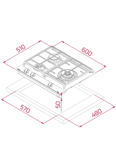 Κεραμικό πλατώ γκαζιού 60cm με 9 βαθμίδες ρύθμισης της φλόγας (ExactFlame)