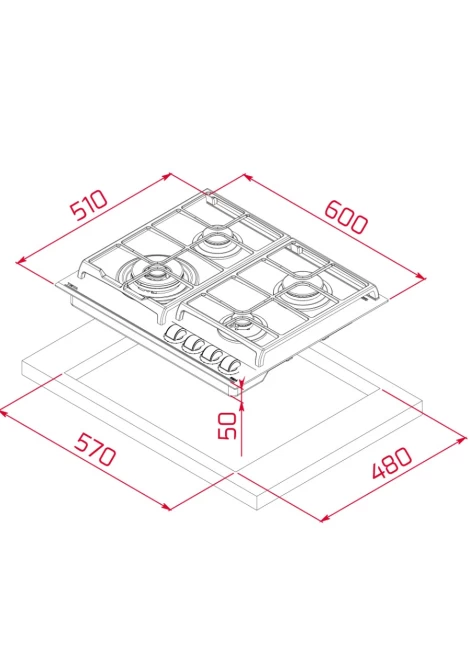 Μαντεμένιες σχάρες με καμπύλη σχεδιασμένες για να «γλιστρά» κάθε σκεύος από την μία εστία στην άλλη με πλήρη ευκολία. Ανεξαρτησία σε κάθε περιοχή μαγειρέματος.