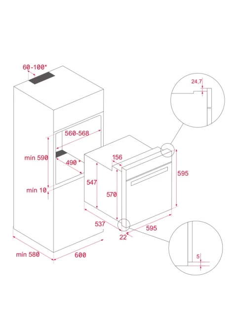 - Πόρτα φούρνου με τριπλό κρύσταλλο, αφαιρούμενη
