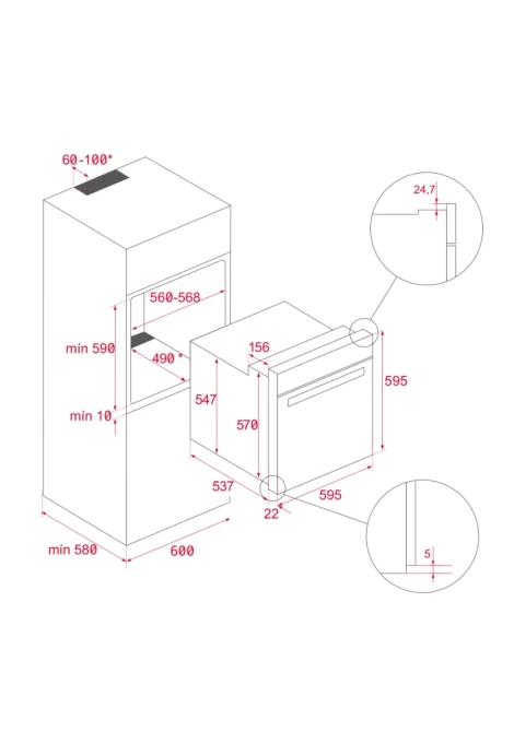 Πόρτα φούρνου με τριπλό κρύσταλλο, αφαιρούμενη