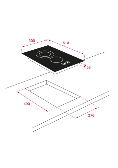 Κεραμικό πλατώ εστιών domino αισθητήρες αφής 2 ζώνες μαγειρέματος high light