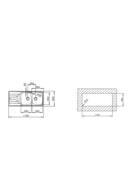 Teka UNIVERSE 80 T-XP 2B 1D Λείος Inox Νεροχύτης (115170001)