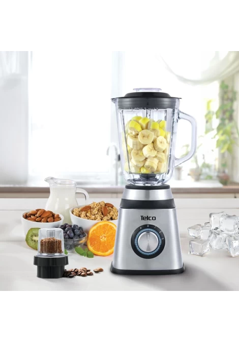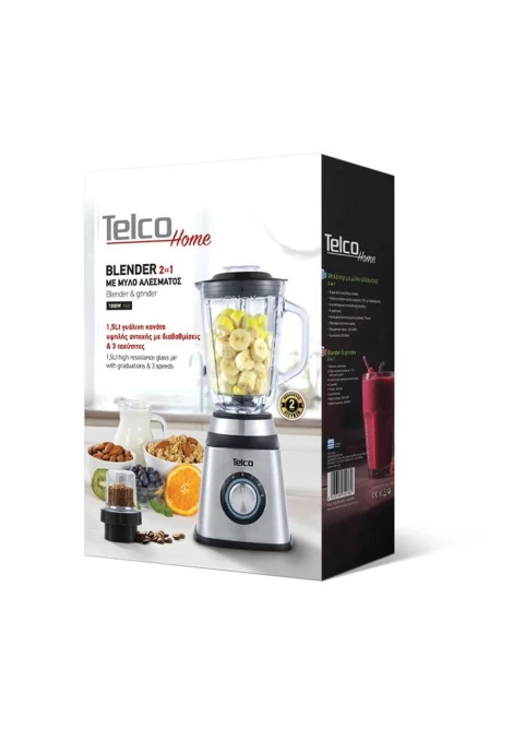 Telco Μπλέντερ 1000W με μύλο αλέσματος γυάλινη κανάτα 1,5 Lt Inox (060129)