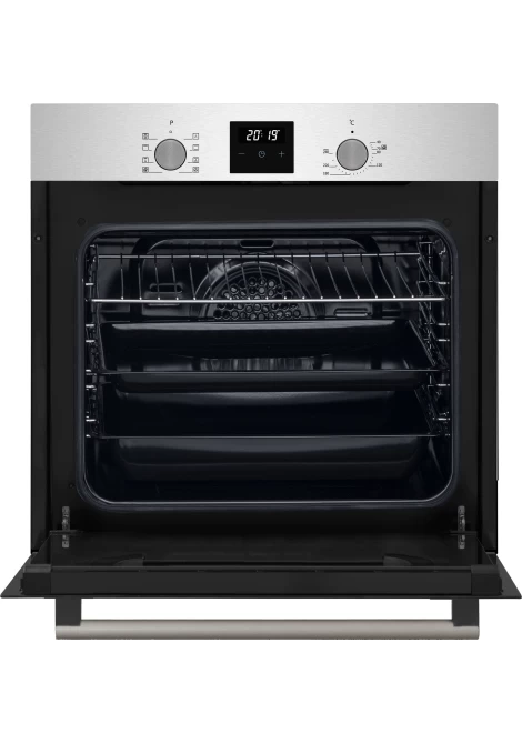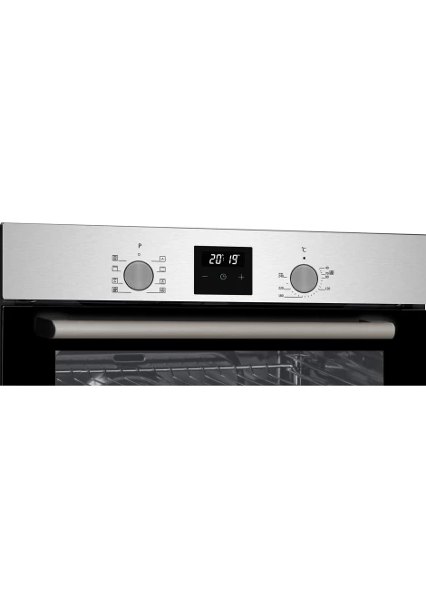 Η σύγχρονη διπλή γυάλινη πόρτα είναι αντανακλαστική στη θερμότητα, καθιστώντας το εξωτερικό του φούρνου ασφαλές στην αφή.