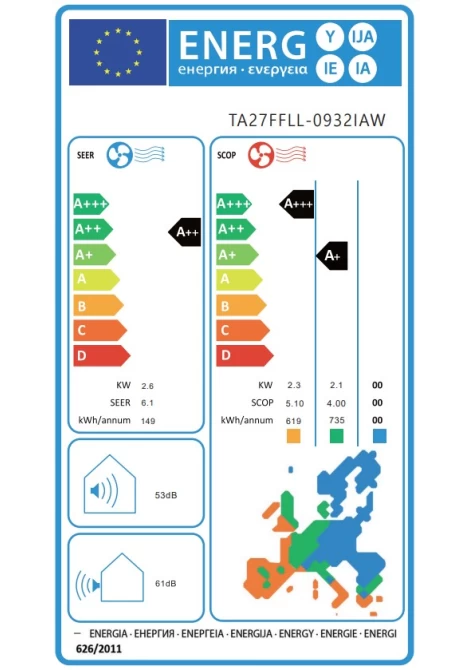 Ενεργειακή Κλάση Ψύξης / Θέρμανσης A++/ A+++
