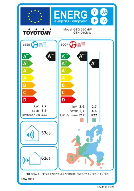 Τα κλιματιστικά TOYOTOMI επιτυγχάνουν οικονομία έως και 45% στην κατανάλωση ενέργειας. Υψηλή Ενεργειακή Κλάση Α+++ σημαίνει: