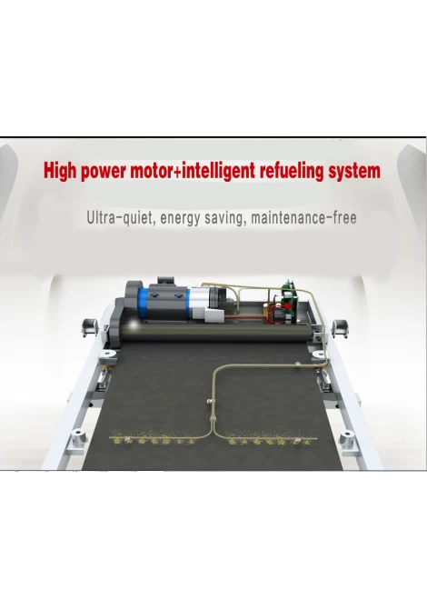 Σύστημα Αυτολίπανσης: Μέσω μίας αυτοματοποιημένης και αξιόπιστης διαδικασίας ο μηχανισμός λίπανσης του διαδρόμου απλευθερώνει στον τάπητα με ακρίβεια την αναγκαία μικροποσότητα λιπαντικού. Έτσι δεν έχουμε σπατάλη λιπαντικού, διατηρούμε το διάδρομο αλλά και το περιβάλλον του καθαρό και “έχουμε το κεφάλι μας ήσυχο” αφού ο διάδρομος δεν χρειάζεται άλλη συντήρηση πέρα από το γέμισμα της δεξαμενής λιπαντικού (90 ml).