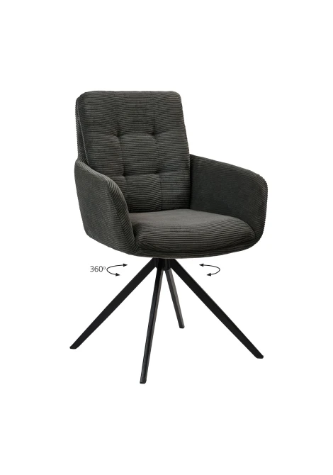 Η Soren είναι μία πολυθρόνα με εντυπωσιακό design και κατασκευασμένη από υλικά εξαιρετικής ποιότητας. Το άνετο κάθισμα της είναι επενδεδυμένο με ύφασμα κοτλέ σε χρώμα γκρι.Ο σκελετός της είναι μεταλλικός διπλής ηλεκτροστατικής βαφής και διαθέτει περιστροφή 360°γεγονός που καθιστά την Soren ιδιαίτερα εύχρηστη. H Soren είναι εξαιρετικά αναπαυτική ενώ το στυλ της μπορεί να καλύψει τις αισθητικές ανάγκες σας σε οποιονδήποτε χώρο.