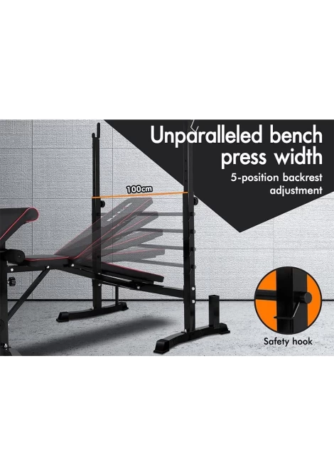 Διαθέτει κάθετη βάση για τοποθέτηση δίσκων βάρους και βάση για κάθετη αποθήκευση μπάρας