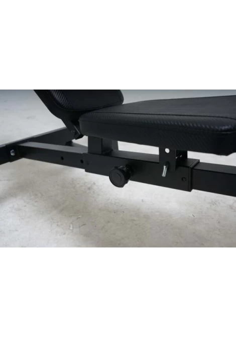 Finding the ideal exercise position with the single roll of the platform seat on the horizontal rail.