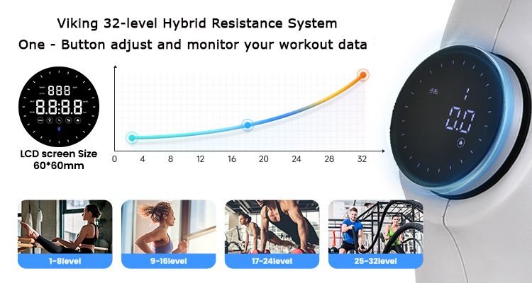Με την Hybrid Ρower η Viking πρωτοπορεί ακόμα μια φορά εξελίσσοντας ένα κωπηλατικό μηχάνημα με υβριδικό σύστημα ηλεκτρομαγνητικής αντίστασης σε συνδυασμό με αντίσταση νερού. Η αντίσταση του νερού προσαρμόζεται στην ένταση και την ταχύτητα της κίνησης μας εκμηδενίζοντας την επιβάρυνση στις αρθρώσεις ενώ το αθόρυβο ηλεκτρομαγνητικό σύστημα αυξάνει εκθετικά τα επίπεδα αντίστασης του μηχανήματος συνεχίζοντας από εκεί που σταματά η αντίσταση του νερού, χωρίς να αυξάνει τον θόρυβο.