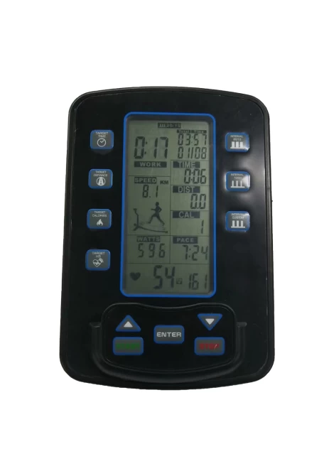 - Οθόνη με ενδείξεις: Χρόνου, Απόστασης, Θερμίδων, Ταχύτητας, Καρδιακοί Παλμών, Watts, Pace.