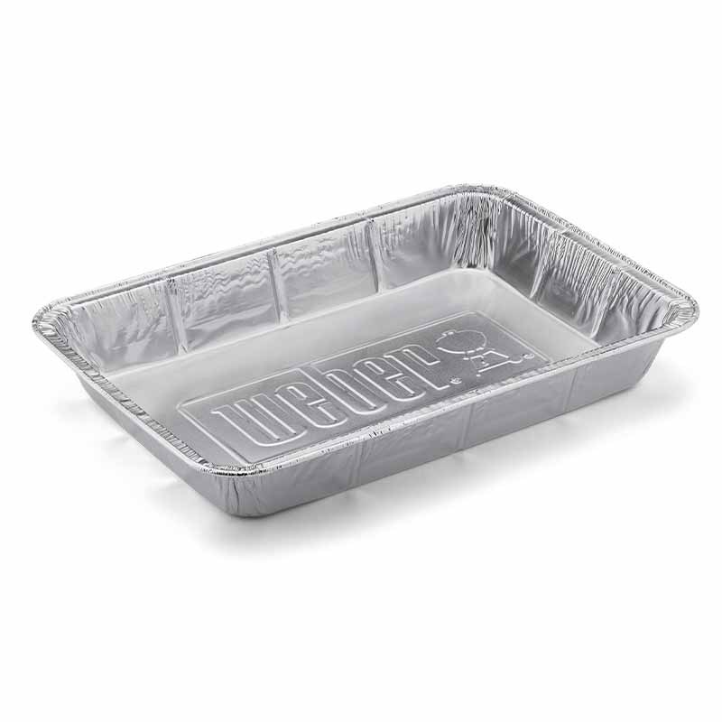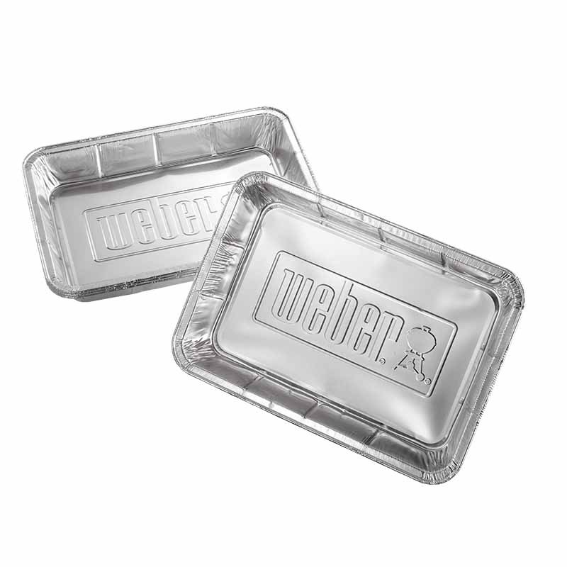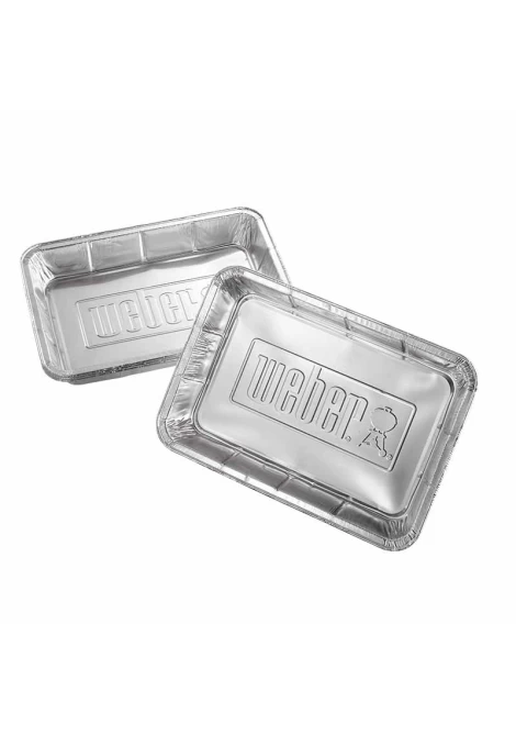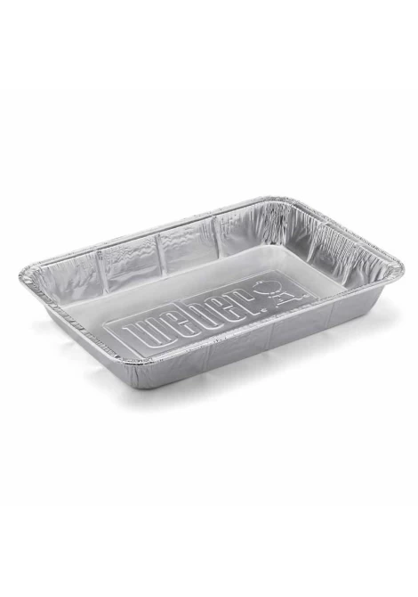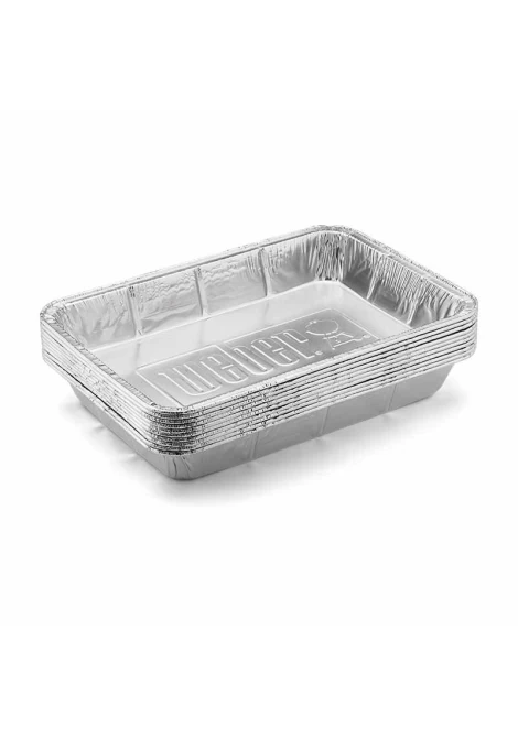 Ανταλλακτικά, επαναχρησιμοποιούμενα μεγάλα ταψάκια αλουμινίου, της Weber®, που χρησιμοποιούνται είτε ως λιποσυλλέκτες κατά το ψήσιμο σε μπάρμπεκιου υγραερίου και κάρβουνου, είτε ως δοχεία για την μεταφορά φαγητού. Χρησιμοποιήστε τα σε ψησταριά υγραερίου για να την διατηρήσετε καθαρή & να προστατέψετε τα ψητά σας, από τις ανεπιθύμητες φλόγες, που δημιουργούνται κατά το ψήσιμο στην σούβλα. Συλλέξτε τους χυμούς του φαγητού σας & δημιουργήστε πεντανόστιμες σάλτσες. Σε ψησταριές κάρβουνου, τοποθετήστε τα ανάμεσα από τα καλάθια των κάρβουνων, ώστε να ψήσετε με έμμεσο τρόπο ή να καπνίσετε για ώρες, μεγάλα κομμάτια κρέατος, χωρίς αυτά να στεγνώσουν. Ιδανικά γεμίστε τα, με νερό, φέτες από λεμόνι και μυρωδικά της αρεσκείας σας, ώστε να δώσετε επιπλέον άρωμα στα ψητά σας. Τέλος, μπορούν να χρησιμοποιηθούν, για να μεταφέρετε και να κρατήσετε ζεστό το φαγητό ή να φτιάξετε συνοδευτικά πιάτα. Το σετ περιλαμβάνει 10 τμχ.
