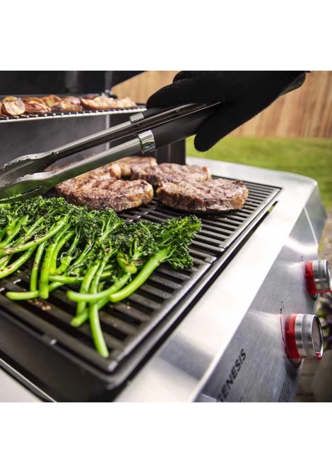 Η Genesis E-315 με 3 καυστήρες και μαντεμένια σχάρα με εμαγιέ πορσελάνινη επίστρωση, προσφέρει θρυλική ποιότητα Weber, απόδοση και ανθεκτικότητα σε ένα πακέτο στο οποίο μπορείτε να βασιστείτε για να κάνετε το μαγείρεμα σε εξωτερικούς χώρους για την οικογένεια και τους φίλους σας, εύκολα και ευχάριστα. Το σύστημα καυστήρα PureBlu ξεχωρίζει το σύστημα σχάρας από την ψησταριά – με μοναδικούς, κωνικούς σωλήνες καυστήρα που παράγουν σταθερή πίεση και φλόγες και παρέχουν ομοιόμορφη θερμότητα σε όλη την επιφάνεια ψησίματος. Οι φλόγες κατευθύνονται πάνω από τις υπερυψωμένες θυρίδες αερίου, ενώ τα υπολείμματα φαγητού πέφτουν κάτω, ελαχιστοποιώντας το φράξιμο και διασφαλίζοντας την ομαλή λειτουργία της ψησταριάς κάθε φορά.
