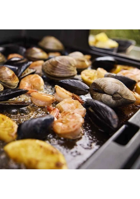 Δημιουργήστε πιάτα με υπέροχη γεύση για την οικογένεια και τους φίλους με την ανανεωμένη ψησταριά υγραερίου Genesis® E-415 με 4 καυστήρες. Απολαύστε ομοιόμορφη κατανομή θερμότητας στις σχάρες μαγειρέματος με το αναβαθμισμένο σύστημα καυστήρα υψηλής απόδοσης PureBlu που αναφλέγεται αξιόπιστα και διατηρεί σταθερή τη ροή υγραερίου. Εξερευνήστε νέους τρόπους για να μαγειρέψετε και να διασκεδάσετε με τις συμπεριλαμβανόμενες σχάρες μαγειρέματος Weber Crafted® Gourmet BBQ System στις οποίες προσαρμόζονται τα σκεύη Weber Crafted GBS (πωλούνται χωριστά), όπως η σχάρα, η πέτρα για pizza, το ταψί και άλλα. Προσθέστε ένα κιτ πλαισίου Weber Crafted® (πωλείται χωριστά) για να χωρέσει μια ποικιλία ψησίματος Weber Crafted® (πωλείται χωριστά). Διατηρήστε τα σκεύη, τα καρυκεύματα και τα φαγητά κοντά στην ψησταριά, έτοιμα για να ψηθούν και εύκολα να τα σερβίρετε στη συνέχεια, με τα βοηθητικά τραπεζάκια που ταιριάζουν σε μια ποικιλία από αξεσουάρ Weber Works και κουμπωτά αξεσουάρ (πωλούνται χωριστά).