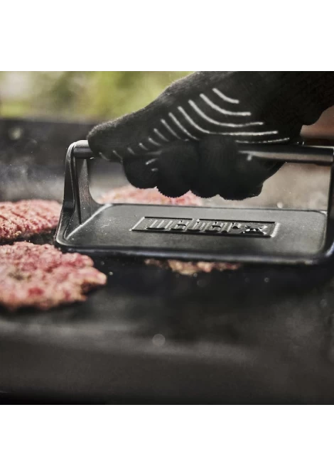 Ψήστε ομοιόμορφα το μπέικον και κάντε τα μπιφτέκια σας smashed με την μαντεμένια griddle press της Weber. Το ιδανικό βάρος και το μέγεθός της θα σας βοηθήσουν να κάνετε τις δημιουργίες σας στην πλάκα ψησίματος, απλά υπέροχες. Μπορείτε να πατήσετε έως και 4 λωρίδες μπέικον ταυτόχρονα και η ανάγλυφη σχεδίασή του βοηθά στην απομάκρυνση του φαγητού καθαρά.