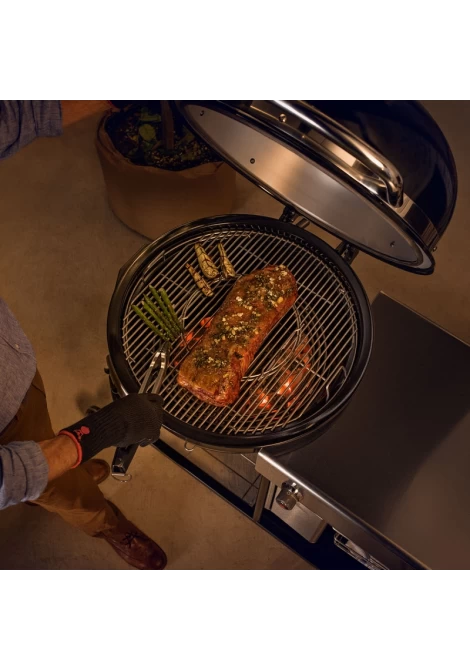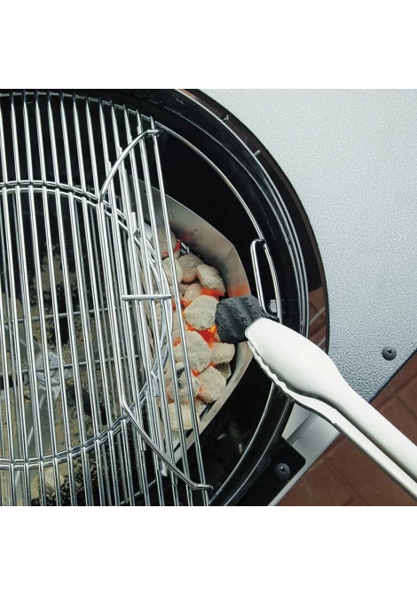 Γλιστρήστε το καπάκι σας πάνω στο ασφαλές στήριγμα καπακιού Tuck-Away™ για να έχετε τα χέρια σας ελεύθερα για το ψήσιμο και παράλληλα προστασία από τους ανέμους.Μια ψησταριά κάρβουνου που σας προσφέρει γρήγορη ανάφλεξη με το φιαλίδιο υγραερίου που διαθέτει και άνεση στο ψήσιμο σας καθώς διαθέτει έναν μεγάλο πάγκο για να ακουμπάτε τα εργαλεία σας, τις πετσέτες,τα τα ταψιά κλπ. Διαθέτει εγγύηση έως 10 χρόνια και την αξιοπιστία των ψησταριών της Weber.Με σύστημα ανάφλεξης αερίου Touch-N-Go. Για την ανάφλεξη κάρβουνων με το πάτημα ενός κουμπιού.
