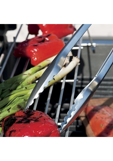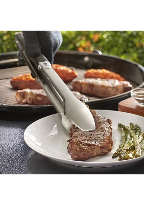 Η καλύτερη φίλη του ψήστη! Μια εξαιρετική λαβίδα που μπορεί να κάνει σχεδόν τα πάντα. Γυρίστε παϊδάκια, μετακινήστε μεγάλα ψητά ή τακτοποιήστε ακόμα και τα κάρβουνα με μεγάλη ευκολία. Η ανοξείδωτη premium λαβίδα της weber, διαθέτει αντιολισθητική λαβή, κλειδώνει για να καταλαμβάνει λιγότερο χώρο κατά την αποθήκευση και έχει αρκετό μήκος, ώστε να προστατεύει τα χέρια σας από τις υψηλές θερμοκρασίες που αναπτύσσονται κατά το ψήσιμο! Πλένεται στο πλυντήριο πιάτων.