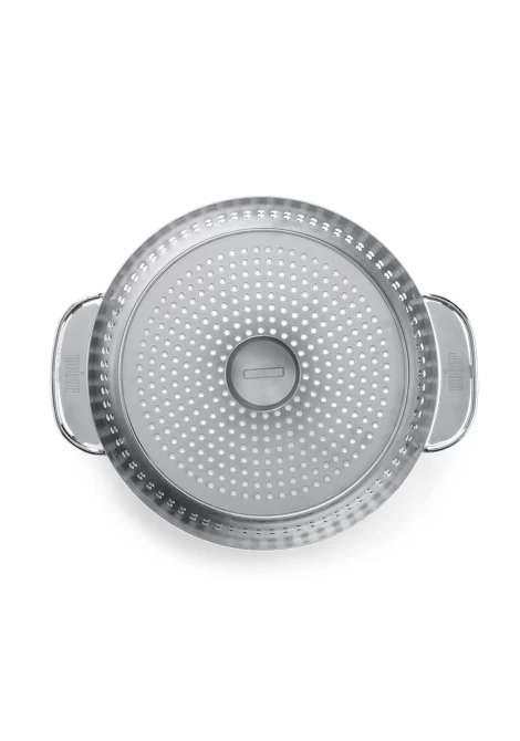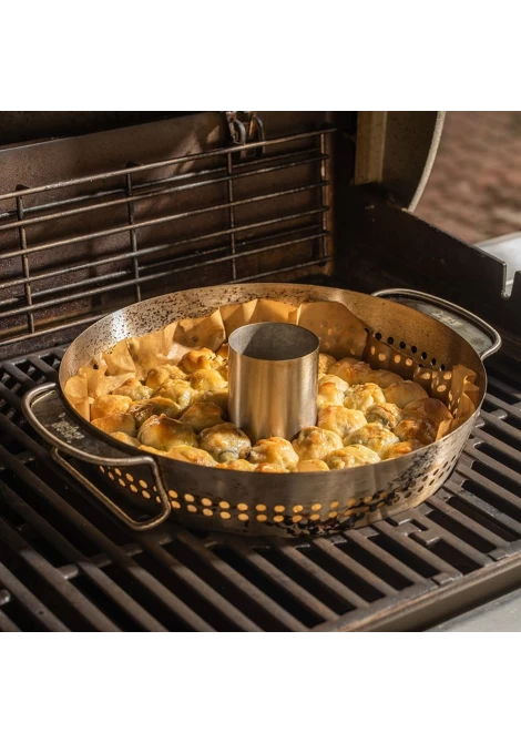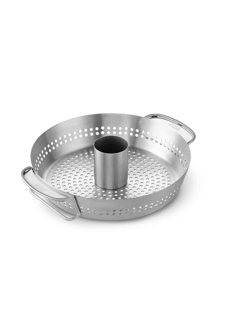 Ένα ασυνήθιστο στήριγμα κοτόπουλου. Ο ευέλικτος 2-σε-1 σχεδιασμός του Στηρίγματος Κοτόπουλου Gourmet BBQ System σας δίνει τη δυνατότητα να ψήνετε το κοτόπουλο και τα συνοδευτικά την ίδια στιγμή. Ψήστε ένα τραγανό αλλά παράλληλα ζουμερό κοτόπουλο στο κέντρο, ενώ τα λαχανικά σιγοψήνονται γύρω στο στεφάνι. Γεμίστε το κεντρικό δοχείο με υγρό για να φτιάξετε ένα ζουμερό κοτόπουλο με μπύρα ή αφαιρέστε το για να χρησιμοποιήστε ολόκληρο το ταψί για λαχανικά και άλλα συνοδευτικά. Εφαρμόζει στην σχάρα Gourmet BBQ System, ώστε να παραμένει στη θέση του κατα το ψήσιμο.