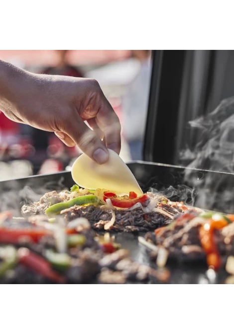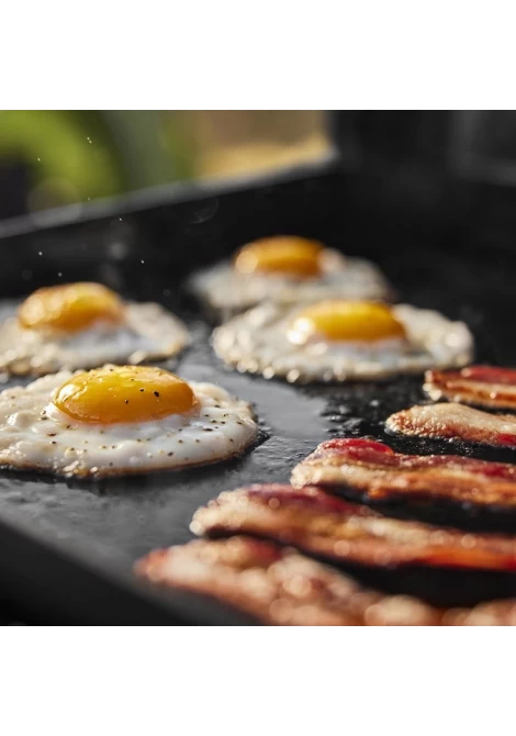 Ανακαλύψτε την μαγειρική εν κινήσει με τη νέα πλάκα ψησίματος Weber® Slate GP Premium Griddle 56 cm. Φτάνει πάνω από 260°C και θερμαίνεται ομοιόμορφα από άκρη σε άκρη, ώστε το φαγητό σας να μαγειρεύεται σταθερά ανεξάρτητα από το σημείο που το τοποθετείτε. Δημιουργήστε τραγανά smashed μπιφτέκια και μπέικον, υπέροχα ροδισμένα pancakes και panini, γευστικά fajitas, stir fries και πολλά άλλα. Με ρυθμιζόμενα πόδια που σας επιτρέπουν να οριζοντοποιήσετε το ταψί σε ανώμαλες επιφάνειες και μια επιλογή για να προσθέσετε μια επεκτεινόμενη βάση, η φορητή πλάκα ψησίματος Weber® Slate GP Premium Griddle 56 cm, είναι ο τέλειος σύντροφος για camping, ψάρεμα, πικ νικ και όλες τις αγαπημένες σας υπαίθριες δραστηριότητες.