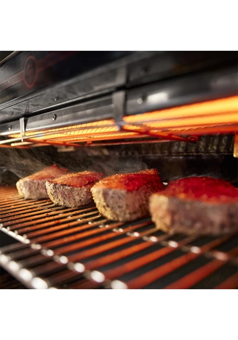 Ανακαλύψτε τη νέα κορυφαία ψησταριά υγραερίου Summit® της Weber! Γεμάτη χαρακτηριστικά που βελτιώνουν τις επιλογές μαγειρέματος σε εξωτερικούς χώρους και σας επιτρέπουν να διασκεδάσετε στο υψηλότερο επίπεδο. Ψήστε μπριζόλες ποιότητας εστιατορίου με το νέο υπέρυθρο καυστήρα, που κατευθύνει τη θερμότητα στην επιφάνεια του φαγητού, δημιουργώντας μια καραμελωμένη κρούστα από άκρη σε άκρη που απογειώνει γεύση. Ενεργοποιήστε το καπνιστήρι από ανοξείδωτο ατσάλι για να προσθέσετε καπνιστή γεύση στα πιάτα σας σε χαμηλή φωτιά. Αυτή η ψησταριά διαθέτει σχάρες WEBER CRAFTED και κιτ πλαισίου που σας επιτρέπει να μετατρέψετε την ψησταριά σε σχάρα, φούρνο πίτσας, γουόκ και πολλά άλλα με μια ποικιλία εξαρτημάτων (πωλούνται χωριστά). Μεταφέρετε την κουζίνα σας έξω και δημιουργήστε νόστιμα πιάτα που θα κάνουν κάθε συγκέντρωση αξέχαστη.