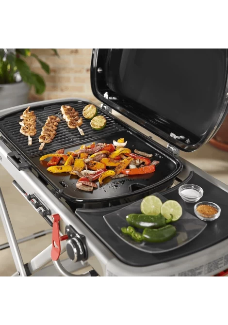 Με την πλάκα ψησίματος, μπορείτε εύκολα να φτιάξετε από τηγανίτες και αυγά το πρωί σε fajitas ή smashed burgers το βράδυ. Η μαντεμένια επιφάνειά της Weber Traveler Πλάκα Ψησίματος με εμαγιέ πορσελάνινη επίστρωση, κατανέμει ομοιόμορφα τη θερμότητα και εμποδίζει τα τρόφιμα από το να κολλήσουν. Στη συνέχεια, όταν έρθει η ώρα να πακετάρετε, καθαρίζεται εύκολα με σαπούνι και νερό.