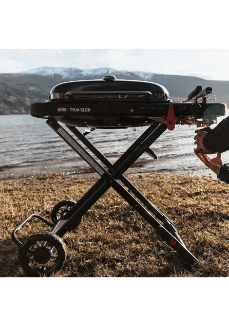 Η φορητή ψησταριά υγραερίου Weber Traveler Stealth Edition, κατασκευάστηκε για όσους θέλουν να απολαμβάνουν νόστιμα ψητά φαγητά, ακόμα κι όταν βρίσκονται μακρυά απ' το σπίτι! Ανθεκτική, στοιβαρή κατασκευή, με εργονομική αναδίπλωση για εύκολη αποθήκευση ακόμα και σε μικρούς χώρους. Σχεδιασμένη για να ανοίγει με το ένα χέρι, με αυτόματο κλείδωμα στο καπάκι, σχάρες ψησίματος από χυτοσίδηρο με εμαγιέ πορσελάνινη επίστρωση, βαρέως τύπου τροχήλατο σχεδιασμό και πλευρικό τραπεζάκι με γάντζους για τα εργαλεία μαγειρέματος. Η καλύτερη λύση bbq για τους λάτρεις του camping, της αναρρίχησης, του πικνικ, για όσους περνούν ώρες στην παραλία ή κάνουν διακοπές με σκάφος.