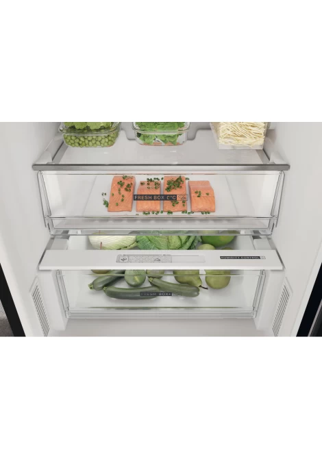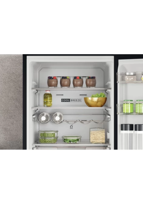 Αυτός ο ελεύθερος ψυγειοκαταψύκτης Whirlpool διαθέτει: μαύρο χρώμα. Τεχνολογία No Frost, κατά της συσσώρευσης πάγου, που εμποδίζει αποτελεσματικά τη συσσώρευση πάγου στον καταψύκτη, μέσω της μείωσης του επιπέδου υγρασίας. Μια συσκευή με μεγάλο ύψος που θα καλύψει τις ανάγκες όλης της οικογένειας. Γυάλινα ράφια, που παρέχουν ανθεκτικότητα αλλά και κομψότητα. Αισθητήρες 6ης ΑΙΣΘΗΣΗΣ, που ελαττώνουν αυτόματα τη θερμοκρασία στο εσωτερικό της συσκευής όταν τοποθετούνται νέα τρόφιμα, μειώνοντας έτσι την κατανάλωση ενέργειας.