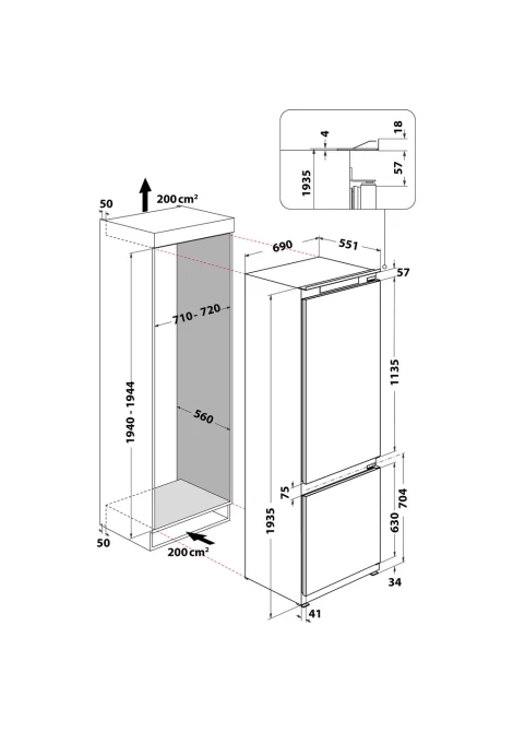 Εντοιχισµού (ΥxΠxΒ): 201,4 x 73,2 x 63 εκ.