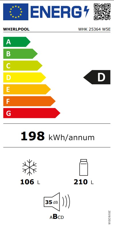 ● Ενεργειακή Κλάση D , Ετήσια Κατανάλωση ενέργειας 198 kWh, INVERTER MOTOR