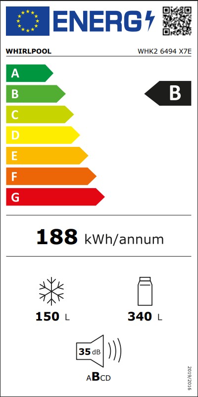 ● Ενεργειακή Κλάση B , Ετήσια Κατανάλωση ενέργειας 188 kWh, INVERTER MOTOR
