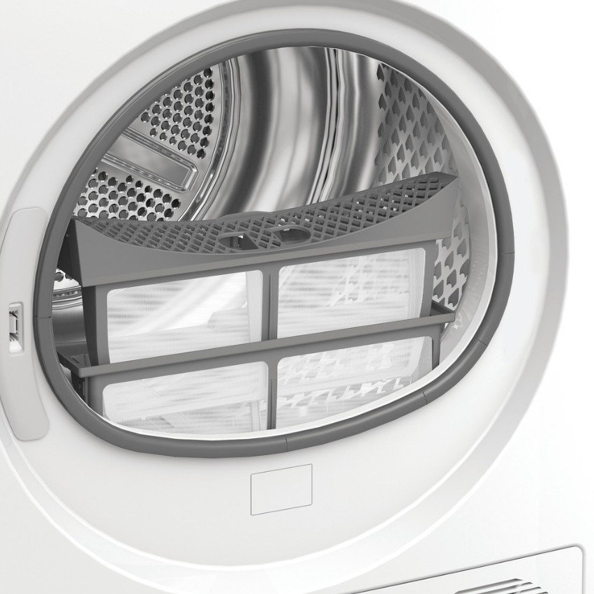 ● Τεχνολογία 6ης αίσθησης: Το στεγνωτήριο χρησιμοποιεί προηγμένους αισθητήρες και αλγόριθμους για να προσαρμόσει τη θερμοκρασία και να ρυθμίσει τον σωστό χρόνο στεγνώματος με βάση το μέγεθος του φορτίου και το επίπεδο υγρασίας