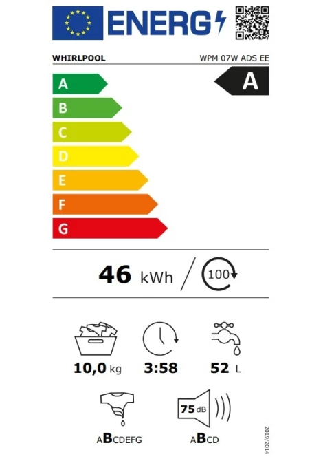 • Κατανάλωση ενέργειας 46 (kWh/100 κύκλους πλύσης), κατανάλωση νερού στο πρόγραμμα eco 52 (L) κύκλο πλύσης