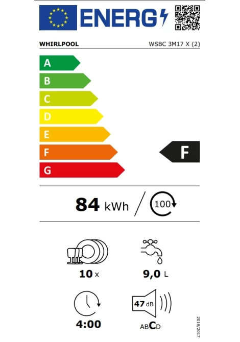 Whirlpool WSBC 3M17 X Εντοιχιζόμενο Πλυντήριο Πιάτων
