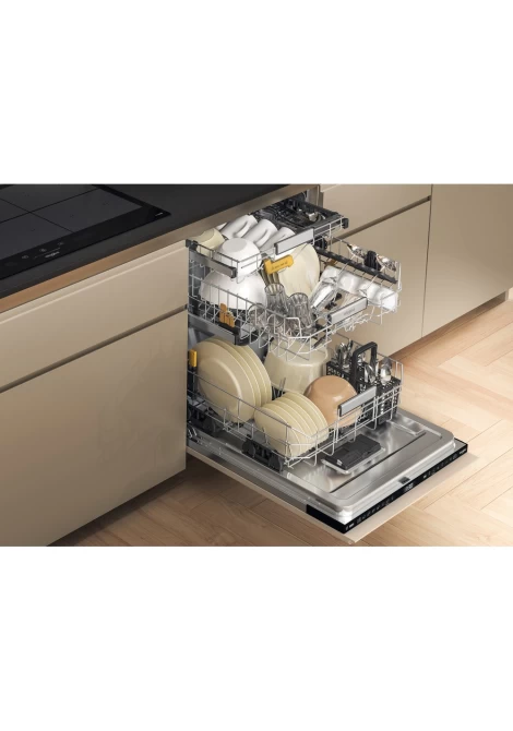 Αυτό το πλυντήριο πιάτων Whirlpool παρέχει 15 ευέλικτες ρυθμίσεις τοποθέτησης σκευών, χάρη στο ευέλικτο τρίτο ράφι με κάθε πιθανό συνδυασμό φόρτωσης.