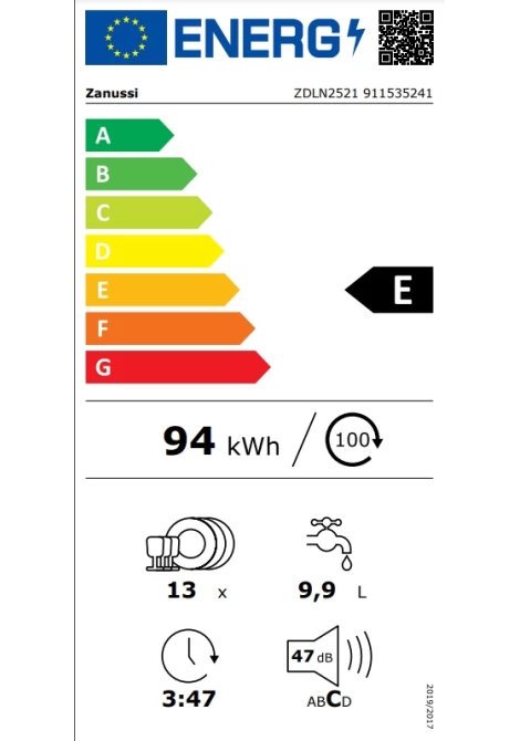 Zanussi ZDLN2521 Εντοιχιζόμενο Πλυντήριο Πιάτων 60 cm